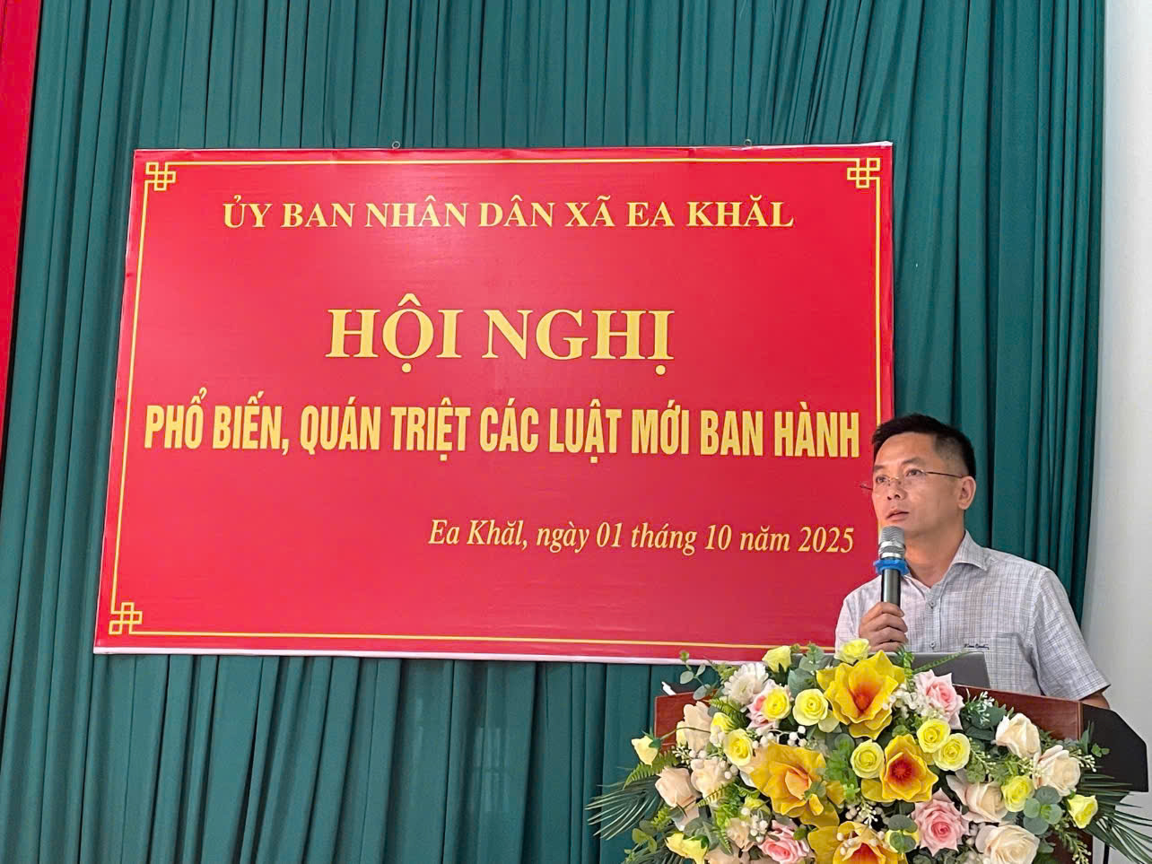 - ỦY BAN NHÂN DÂN XÃ EA KHĂL TỔ CHỨC HỘI NGHỊ PHỔ BIẾN, QUÁN TRIỆT CÁC LUẬT MỚI BAN HÀNH (01/10/2025)