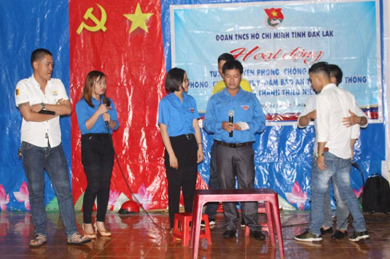 Ảnh: Tiểu phẩm tuyên truyền về tác hại của ma túy của Đoàn xã Ea Wy, huyện Ea H'Leo