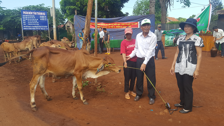Ảnh: Quang cảnh buổi trao bò cái giống lai.