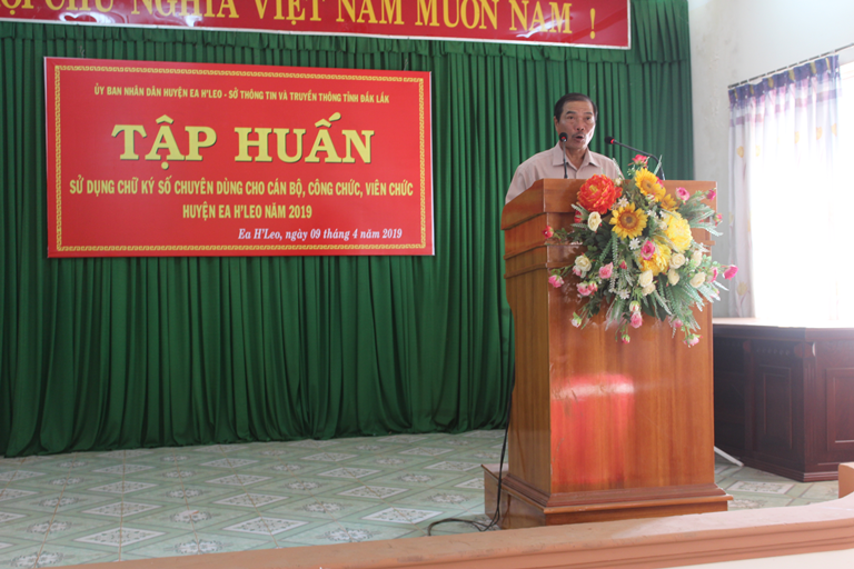 Sáng ngày 09/4/2019 tại Hội trường HĐND&UBND huyện, UBND huyện Ea H'Leo phối hợp với Sở Thông tin và Truyền thông tỉnh Đắk Lắk tổ chức Hội nghị tập huấn triển khai chữ ký số và hệ thống chứng thực chữ ký số chuyên dùng trong các cơ quan nhà nước năm 2019.