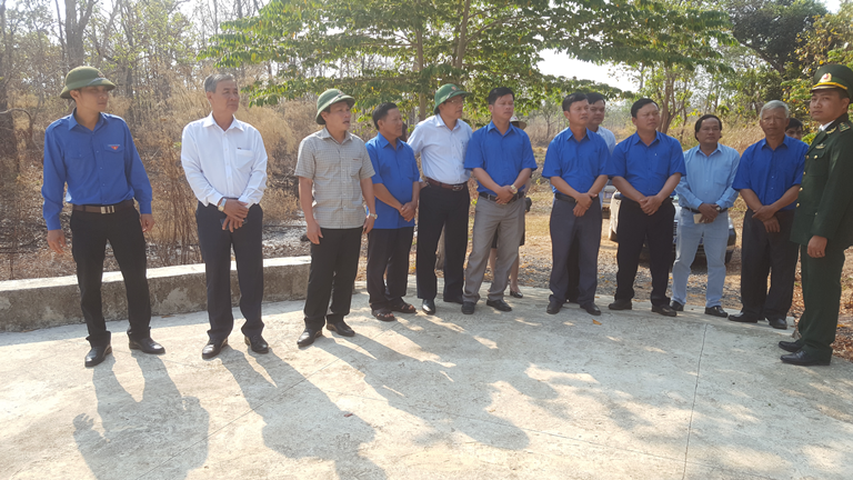 Đoàn lãnh đạo Huyện ủy, HĐND, UBND huyện và Đoàn viên thanh niên huyện Ea H'Leo tham quan cột mốc biên giới số 41